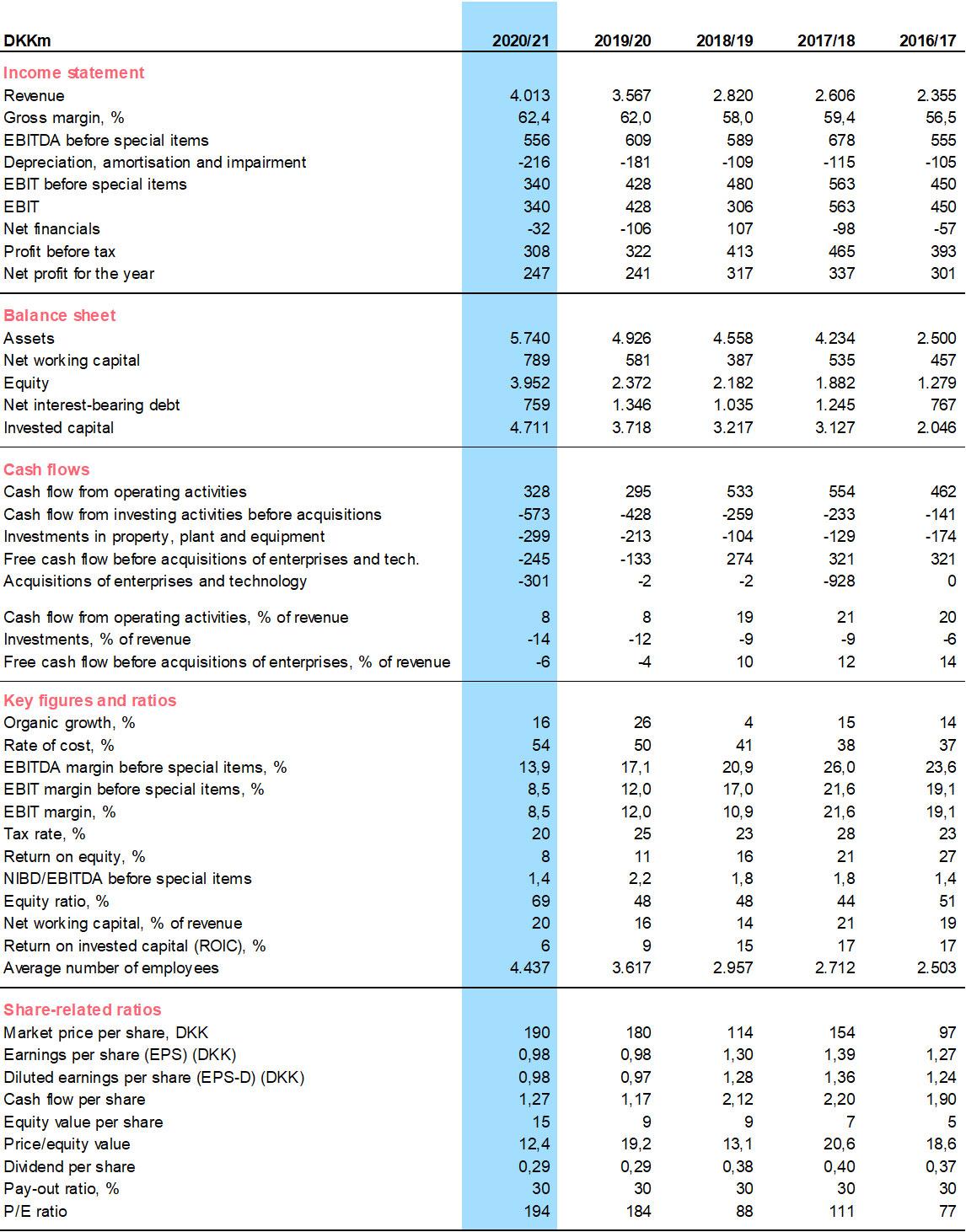 ROIC: EBIT before special items less tax in relation to assets less non-interest-bearing debt.
