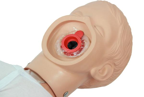 The students will feel the realistic airway resistance and the chest will start rising when the head is correct tilted and air blown into the manikin.