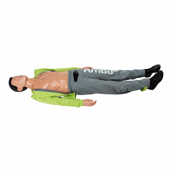 The Ambu Man is a highly developed instruction and training manikin for the simulation of realistic and correct anatomical and physiological conditions during cardiopulmonary resuscitation by means of rescue breathing and chest compression.