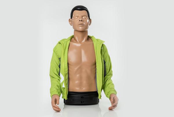 The AmbuMan allows optimal training of chest compressions combined with a realistic respiration. The user friendly Ambu hygienic system prevents cross-contamination and ensures realistic airway resistance and an exhalation through mouth and nose.