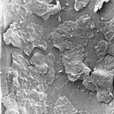 The biological soil is associated with the defects and is also attached to undamaged areas.