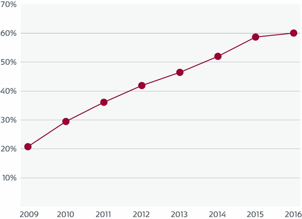 Continuous increase in non-compliance with an infection control standard intended to reduce infection risk