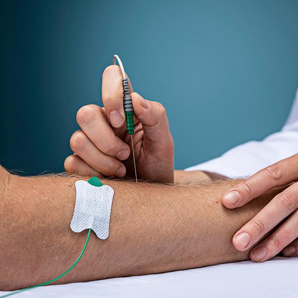The design of the needle tip is optimized to meet the needs of low penetration force with sufficient sensor area, obtaining signals from the desired amount of muscle fibers with minor patient pain.