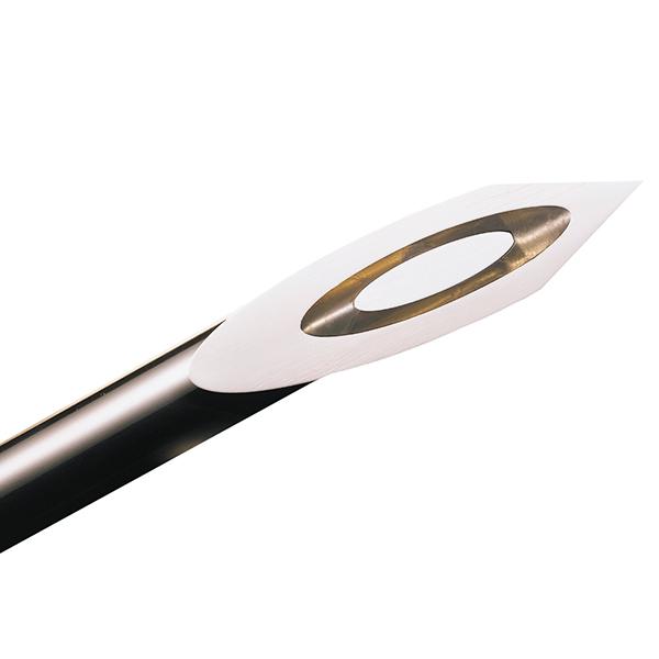 The cannula is made of stainless steel and designed to balance between stiffness and flexibility.